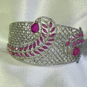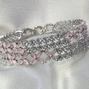 $28.00Bangle in Silver Colour with Pink Clover Shape Stone