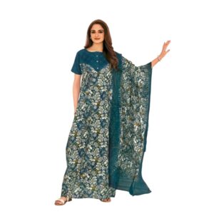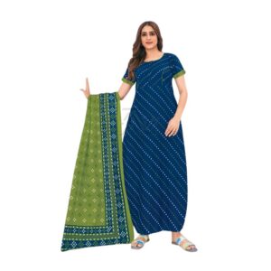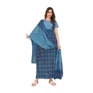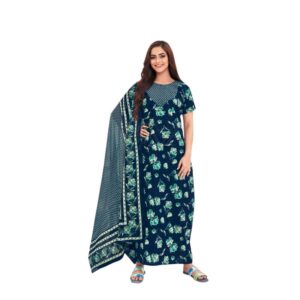 Pranjul Nighty with Duppatta – Dark Blue with Green