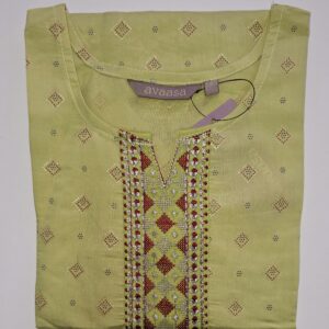 Avaasa Prints and Embroidered Yoke Straight Kurta Product Details: Brand : Avaasa Colour : Green Fabric : Polyester No Darts Colours may slightly differ due to screen display