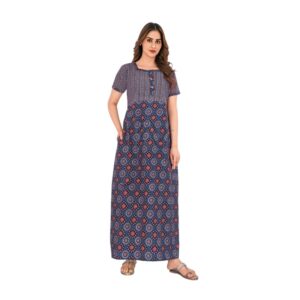 Daily Night Wear Cotton Maxi For Women Product details Material composition :Â Printed Pure Cotton Length :Â Maxi Material : 100% Cotton Sleeve Style: Short Sleeve PN – 706