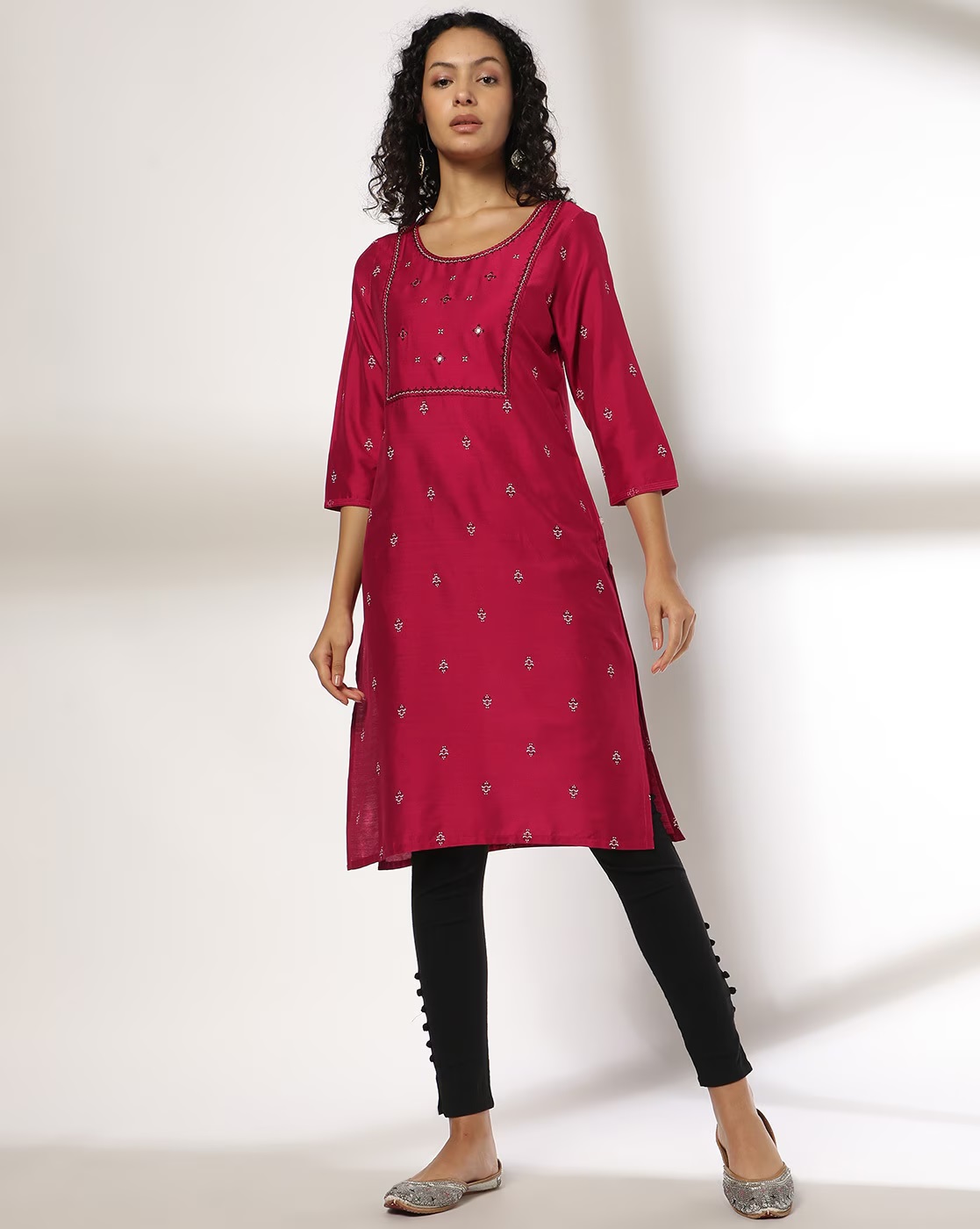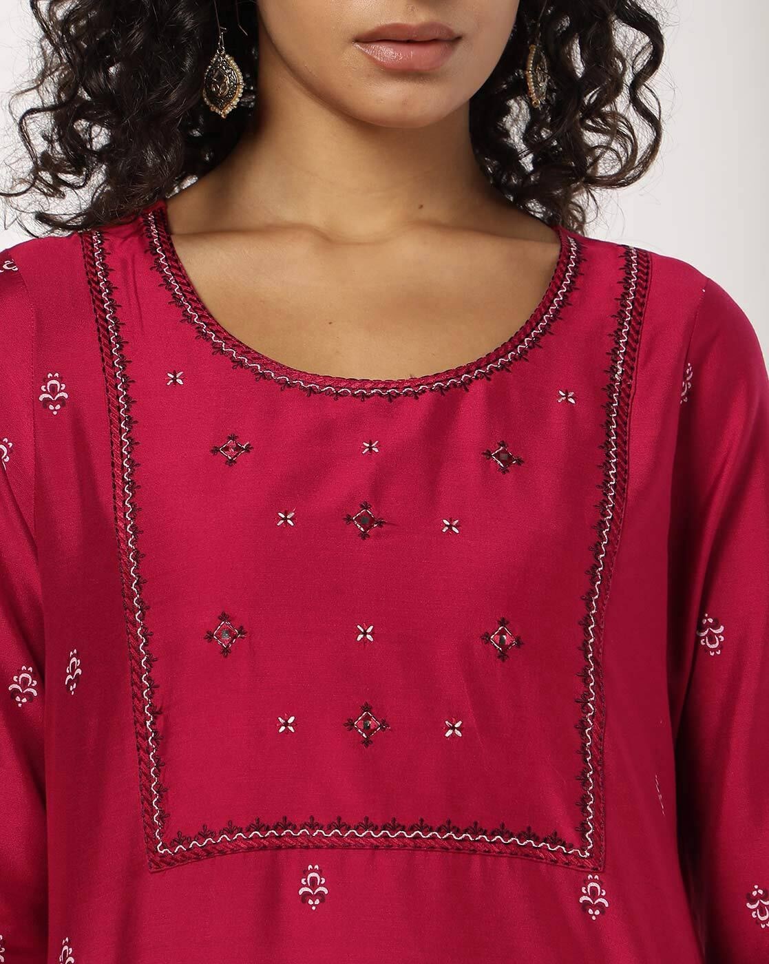 Avaasa Hot Pink Embroidered Yoke Straight Kurta