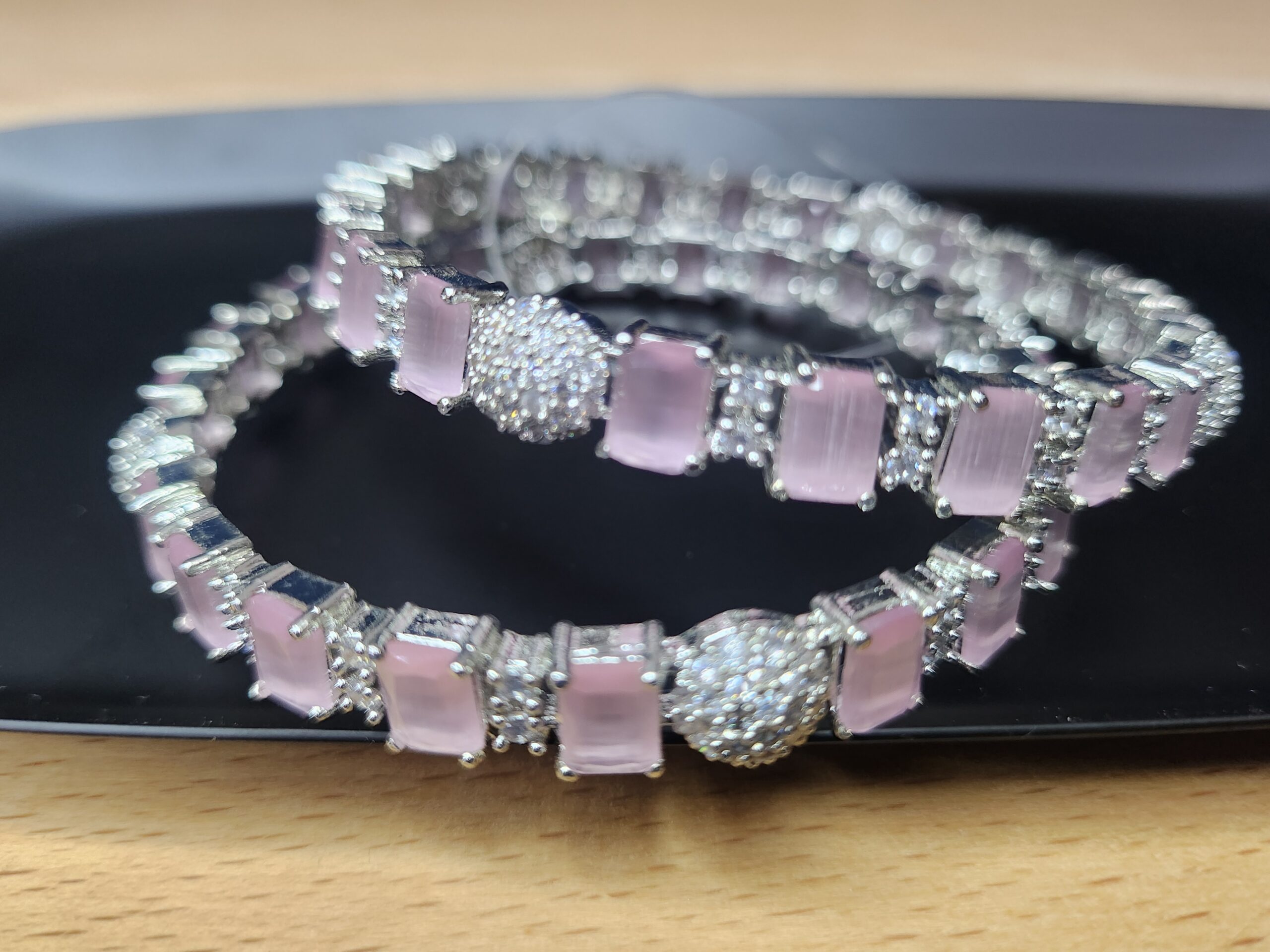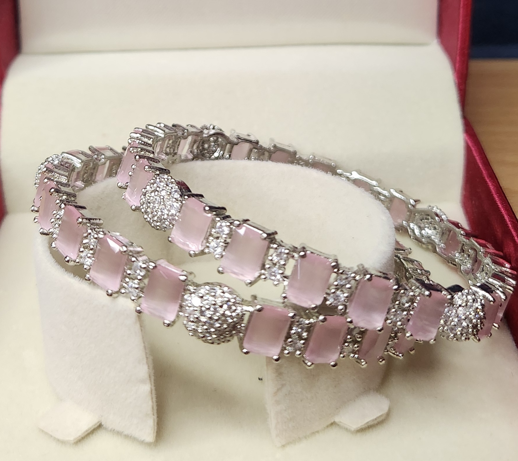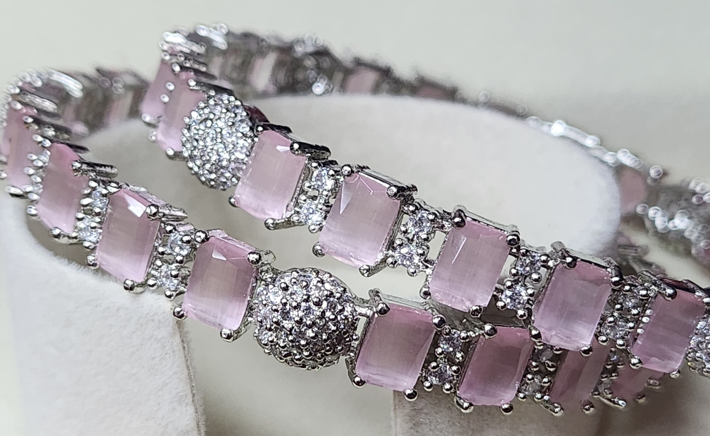 Bangle in Silver Colour with Pink Rectangle Stone