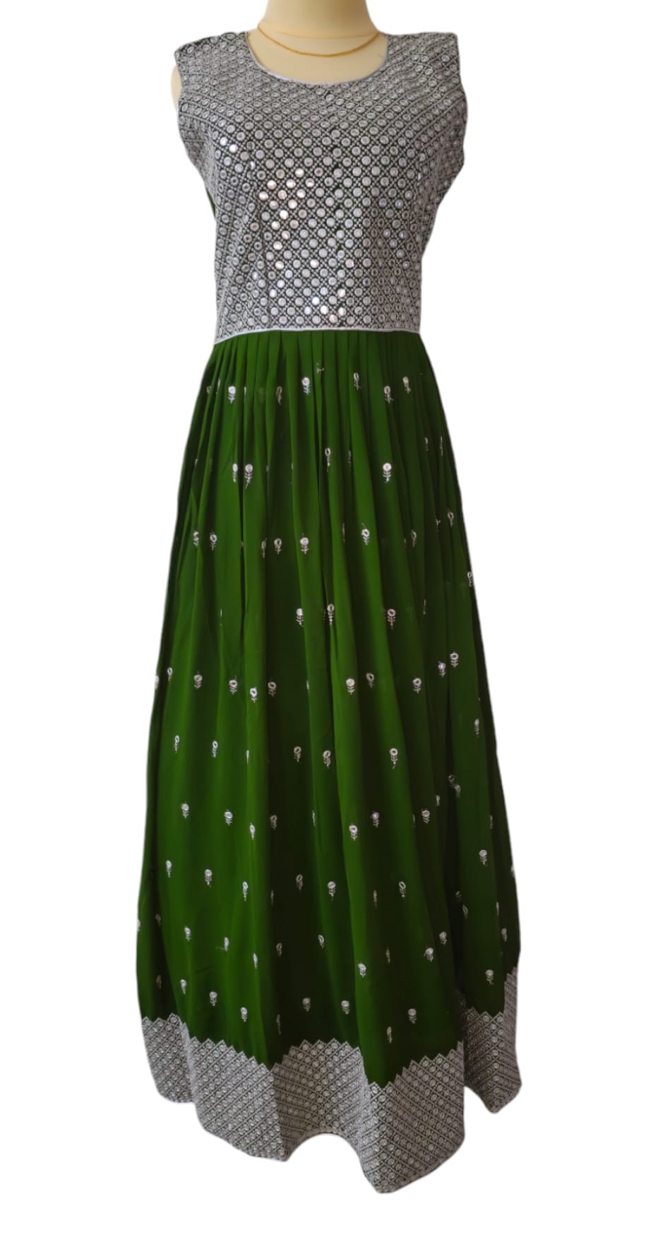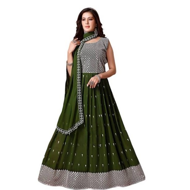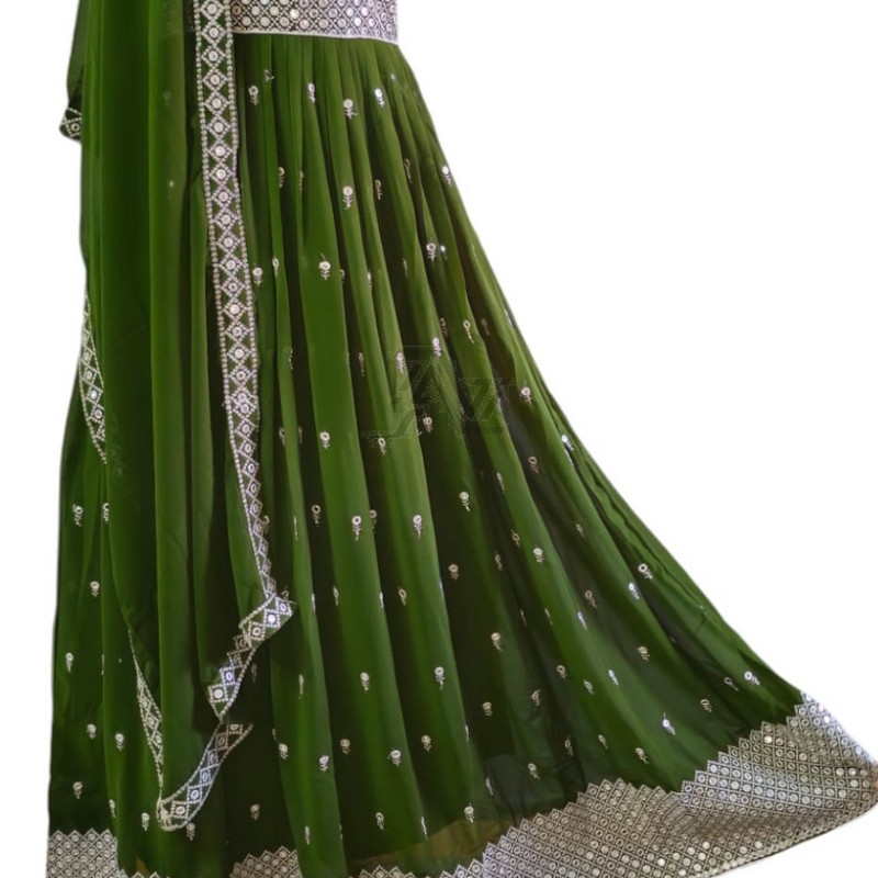 Green Flared Long Gown with Pant and Duppatta