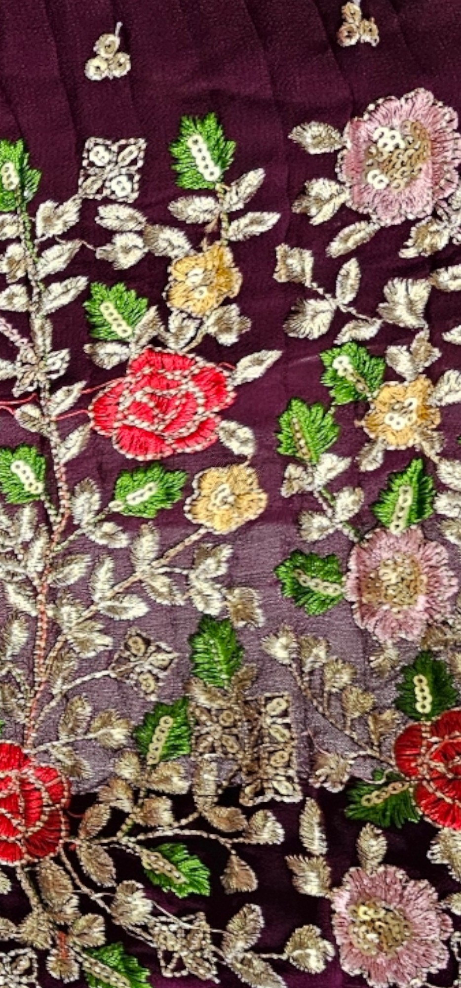 Heavy Crushed Chiffon Salwar Embroidered Yoke with Pant and Net Duppatta
