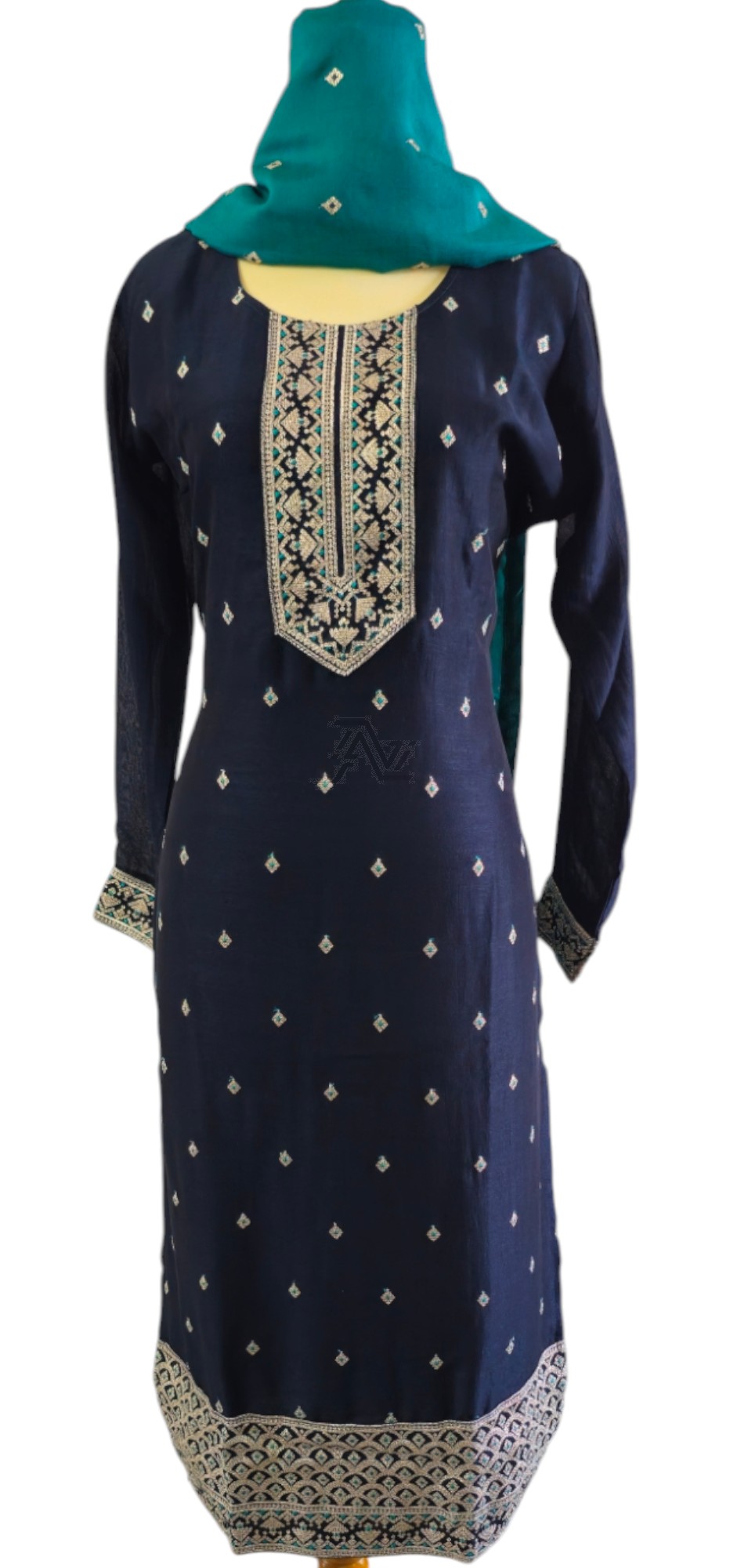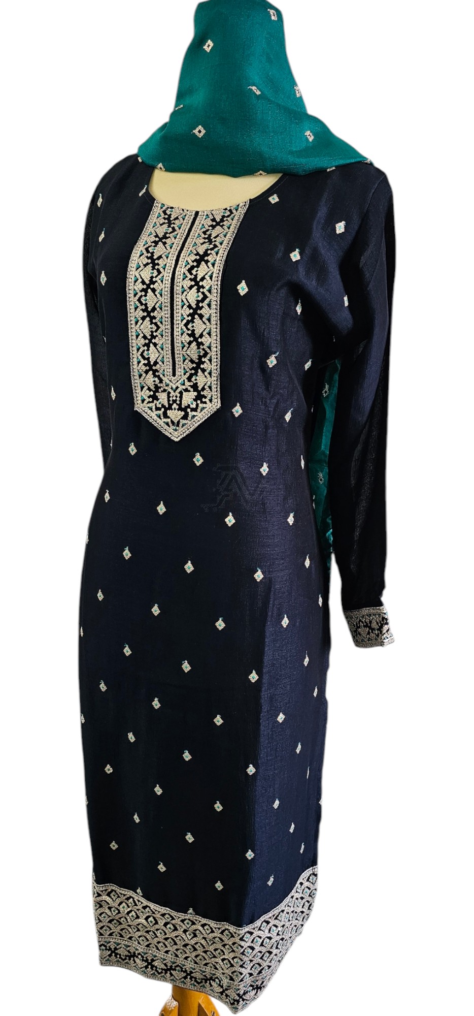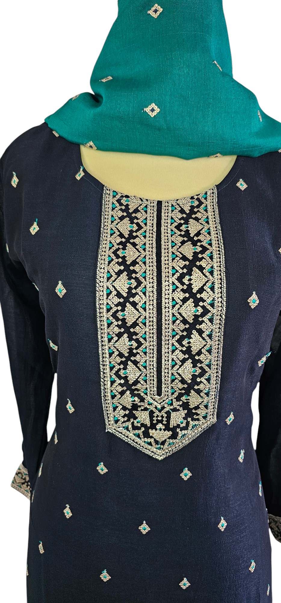 Heavy Embroidered Vichitra Silk Salwar with Grand Duppatta