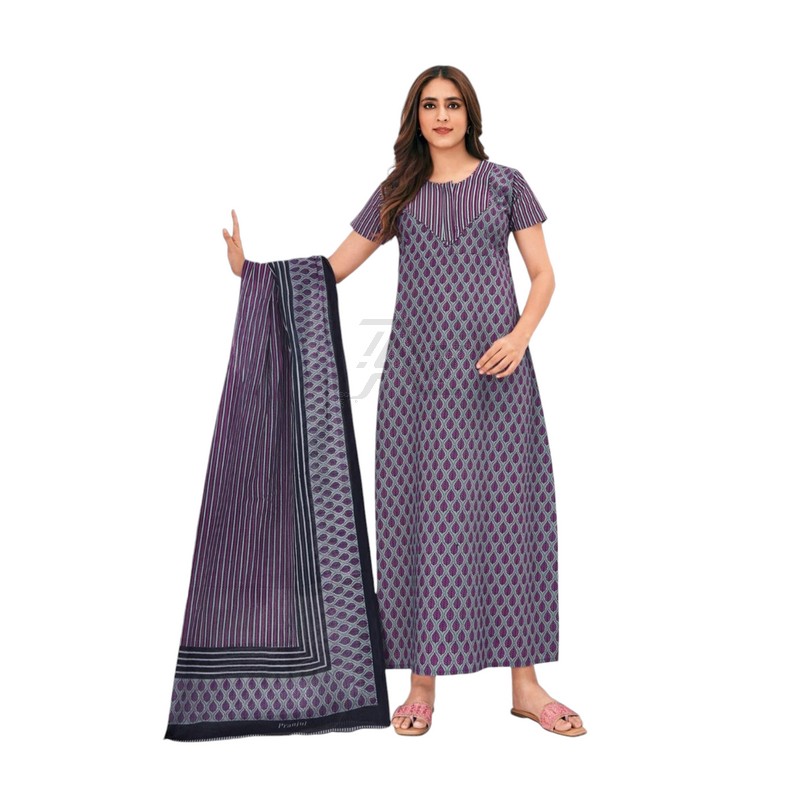 Pranjul Nighty with Duppatta – Grey with Pink Leaves