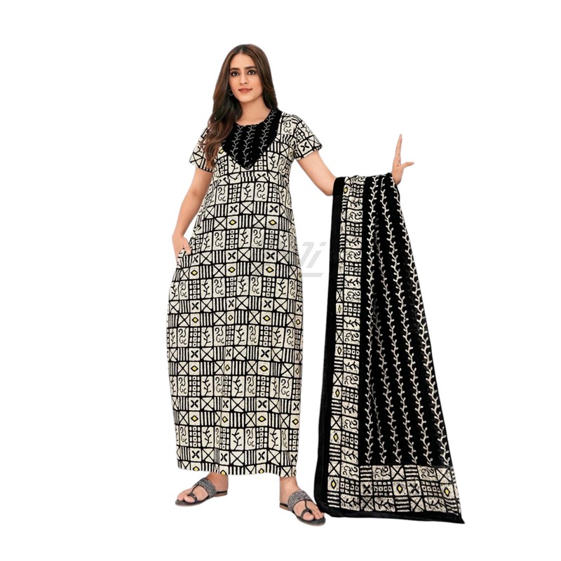 Pranjul Nighty with Duppatta – White and Black