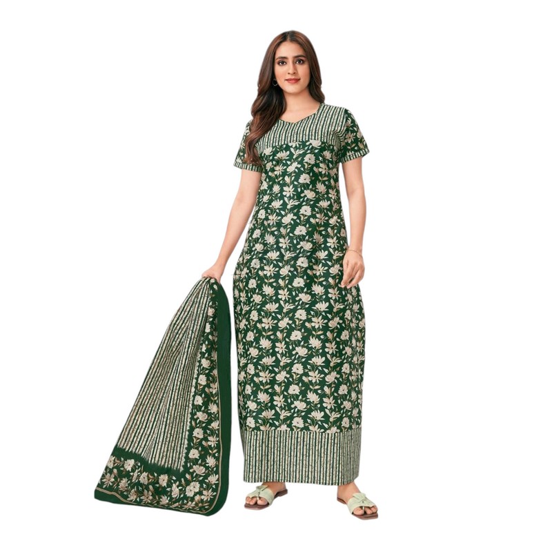 Pranjul Nighty with Duppatta – Green Floral Pattern